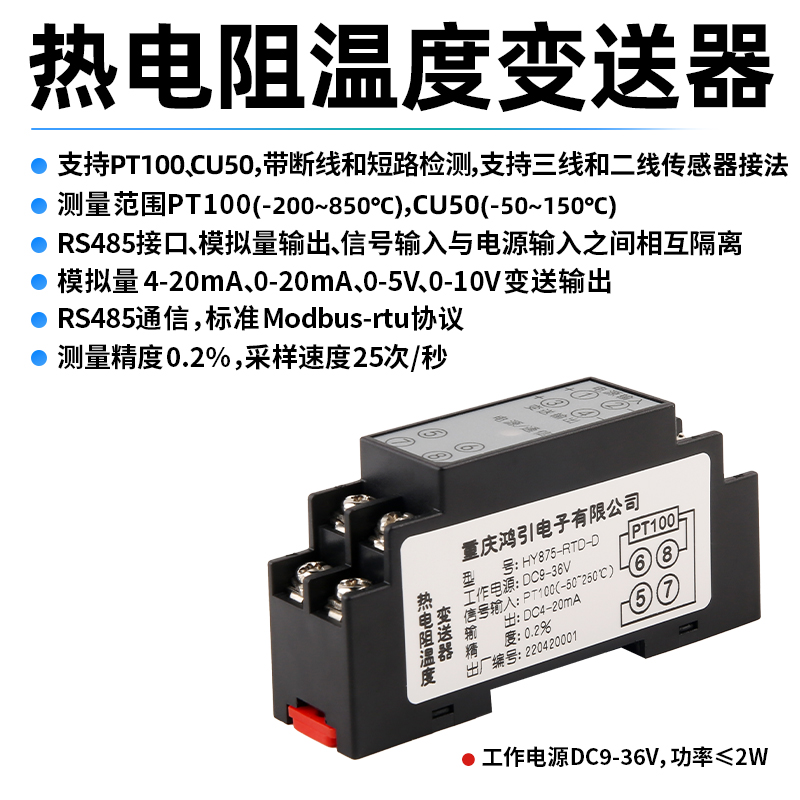 型號 | RS485通信:HY875-RTD-R 模擬量變送:HY875-RTD-D |