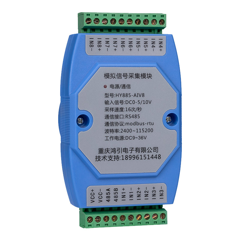 VCC+、VCC-:電源的正負輸入接口。485A、485B:RS485的A、B接口。INx+、INx-:第x路DC0-5V(或10V)輸入接口,x代表1~8。