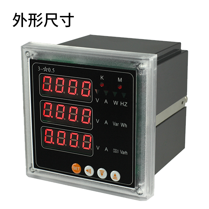 測量電網中的電量參數有:Ua、Ub、Uc(相電壓);Uab、Ubc、Uca(線電壓);Ia、Ib、Ic(電流);In(漏電流);Pa、Pb、Pc、Ps(每相有功功率和總有功功率);Qa、Qb、Qc、Qs(每相無功功率和總無功功率);PFa、PFb、PFc、PFs(每相功率因數和總功率因數);Sa、Sb、Sc、Ss(每相視在功率和總視在功率);F(頻率)以及有功(無功)電能;復費率電能;三相電壓諧波含量;三相電流諧波含量,所有的測量電量參數全部保存儀表內部的電量信息表中,通過儀表的RS485通訊接口可訪問采集這些數據。